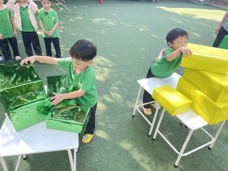 เด็ก ๆ สนุกสนานกับการเล่นเกมเรียงลำดับกล่อง