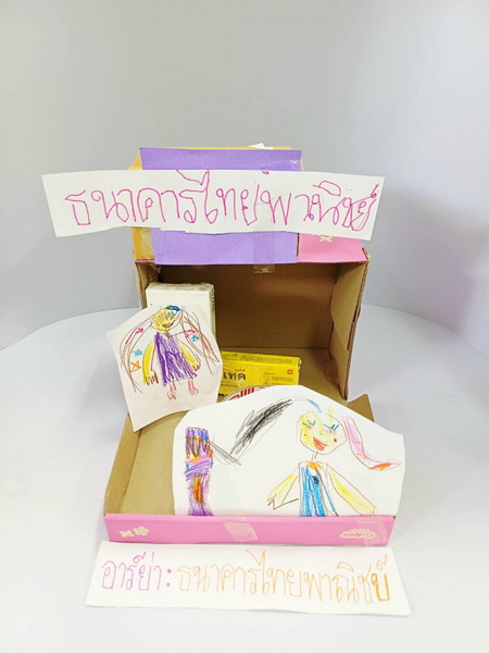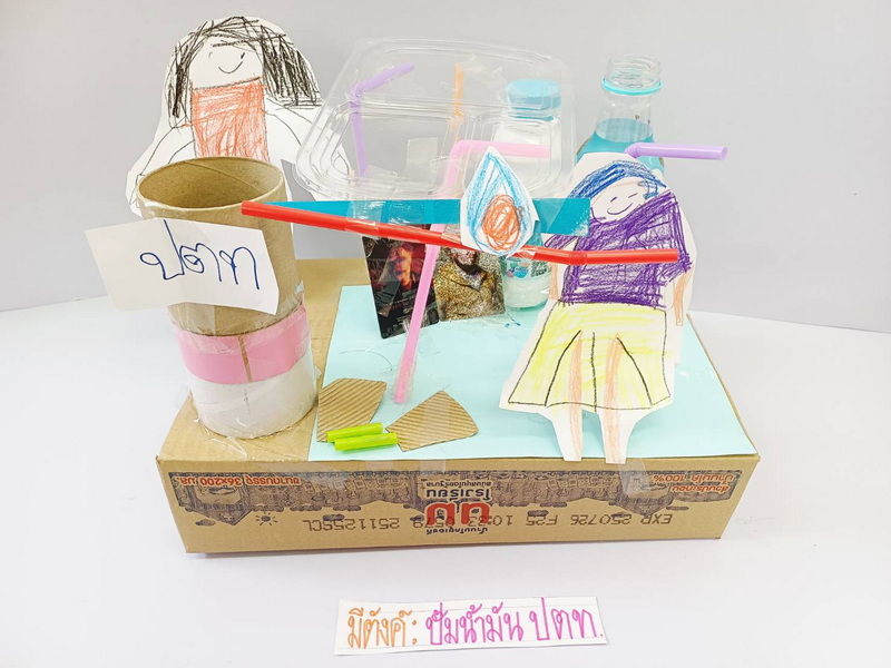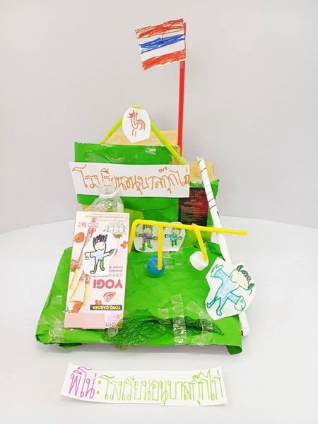 ผลงานการจำลองสถานที่ที่อยู่ใกล้โรงเรียนโดยใช้เศษวัสดุ อาร์ย่า : ธนาคารไทยพาณิชย์