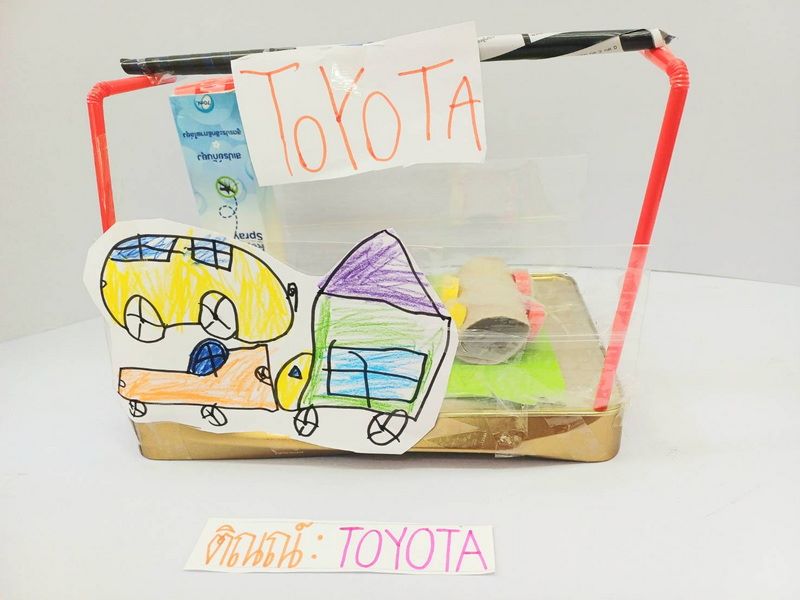 ผลงานการจำลองสถานที่ที่อยู่ใกล้โรงเรียนโดยใช้เศษวัสดุ ติณณ์ : TOYOTA