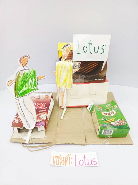 ผลงานการจำลองสถานที่ที่อยู่ใกล้โรงเรียนโดยใช้เศษวัสดุ เซนต์ : Lotus