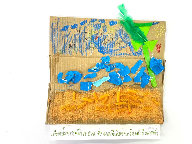 ผลงานสร้างภาพเสียงด้วยเศษวัสดุต่าง ๆ ลิลลี่ : เสียงน้ำจากคลื่นทะเล ที่ทะเลมีนกร้องดังหลายตัว