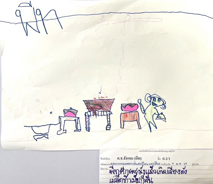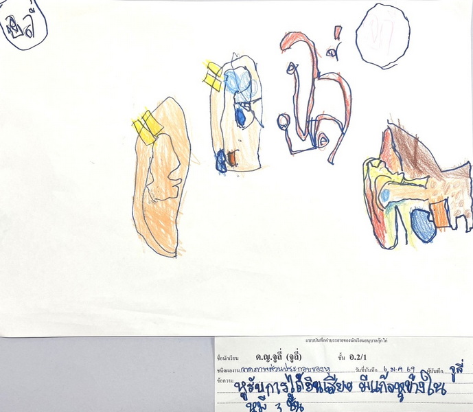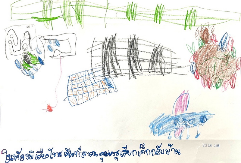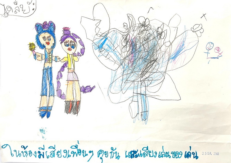 ผลงานวาดภาพเสียงในห้องเรียน ไคลี่ย์ : ในห้องมีเสียงเพื่อน ๆ คุยกัน และเสียงเล่นของเล่น
