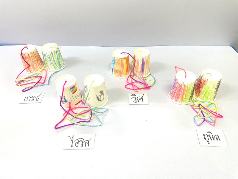 ผลงานการประดิษฐ์และตกแต่งโทรศัพท์ด้วยถ้วยแก้วกระดาษของ เกรซ ไอริส วิศ และภูนิล
