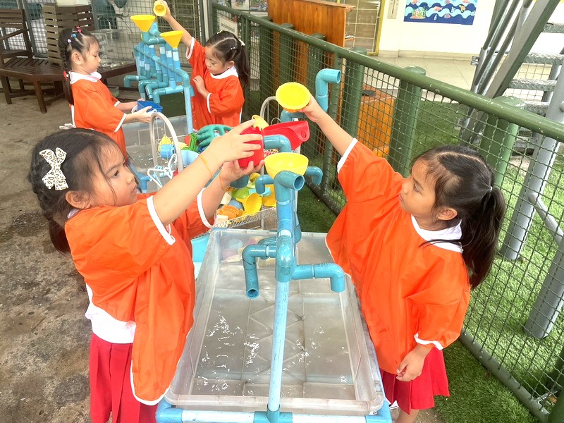 เด็ก ๆ เล่นสำรวจน้ำเพื่อสืบค้นเกี่ยวกับลักษณะของน้ำ
