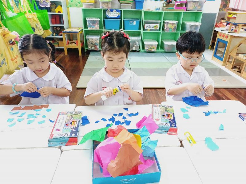 เด็ก ๆ ฉีกปะกระดาษตามจินตนาการ