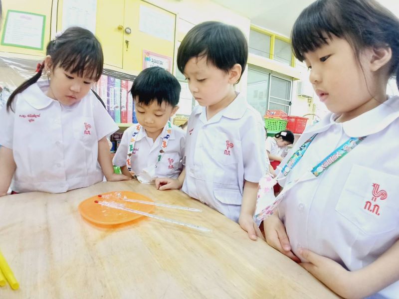 เด็ก ๆ ทำการทดลองตามที่คาดคะเนกันไว้ และสังเกตจากสิ่งที่เกิดขึ้น