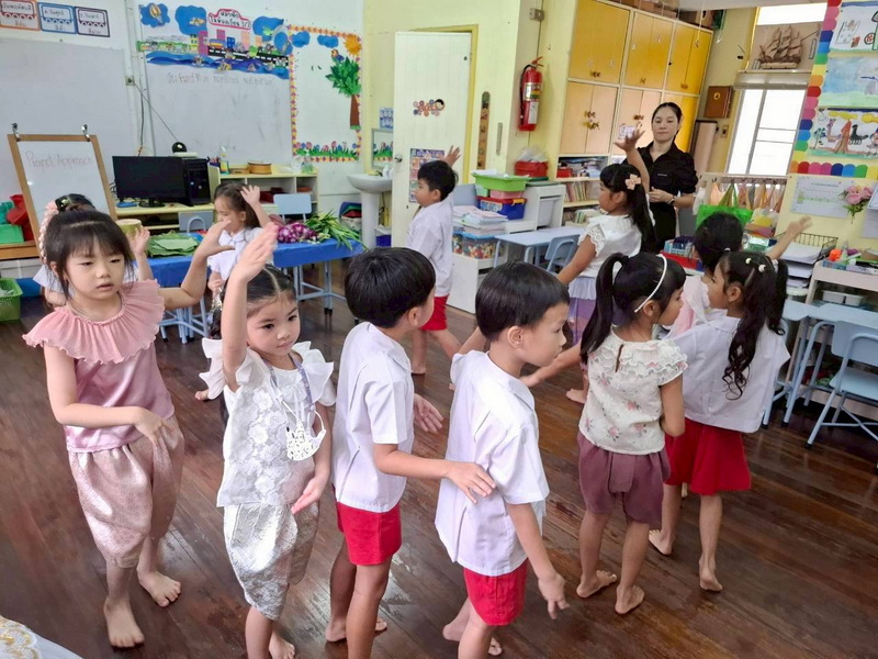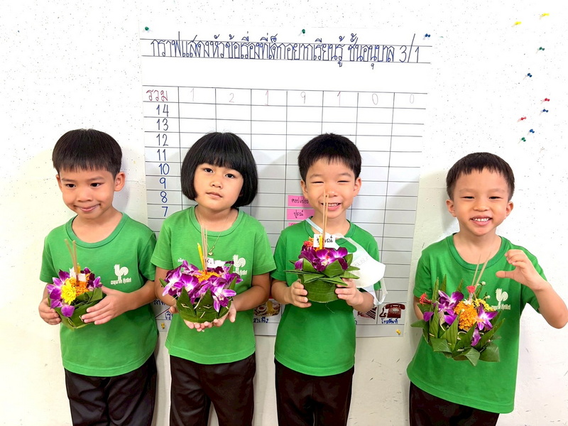 เด็กร่วมรำวงวันลอยกระทงในห้องเรียนกันอย่างสนุกสนาน