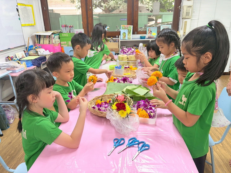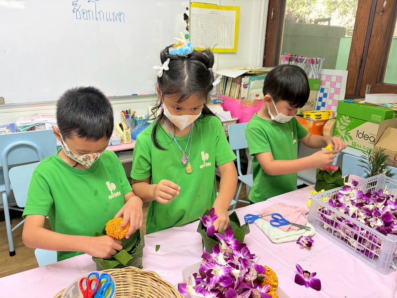เด็ก ๆ เลือกใช้ดอกไม้ตกแต่งกระทงของตนเอง