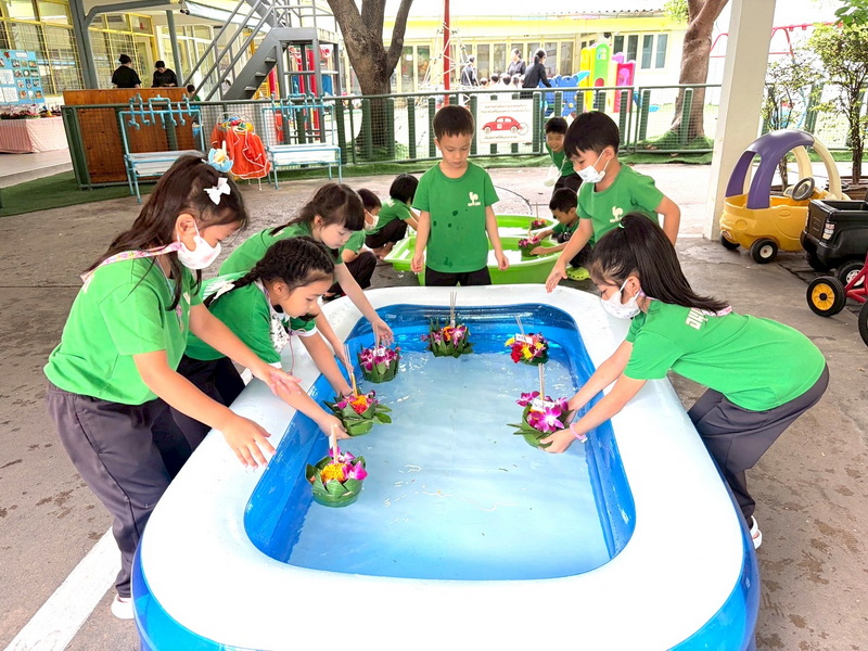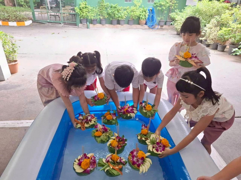 ช่วงเช้าเด็ก ๆ ร่วมกันรำวงเพลงลอยกระทง