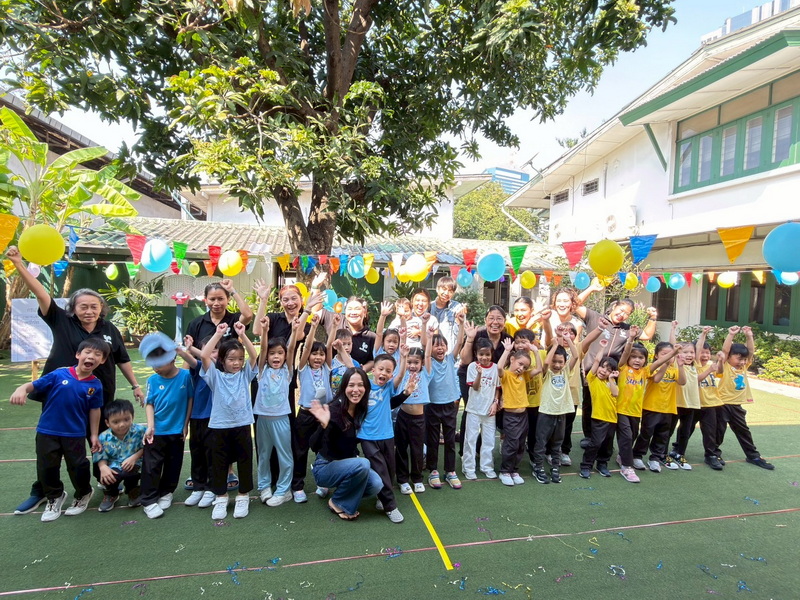 ครู ผู้ปกครองและเด็กถ่ายรูปร่วมกันเป็นที่ระลึกงานกิจกรรมกีฬาสี เมื่อวันที่ 29 ธันวาคม 2568