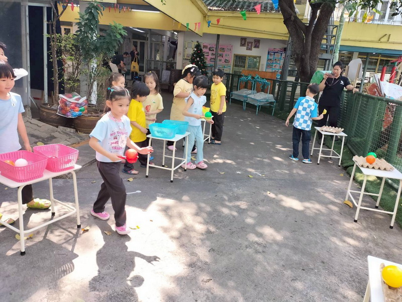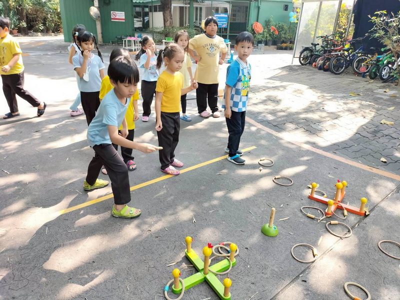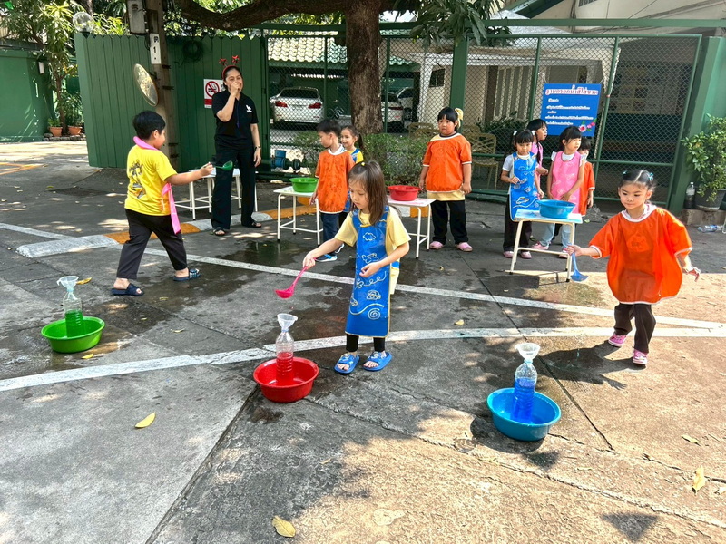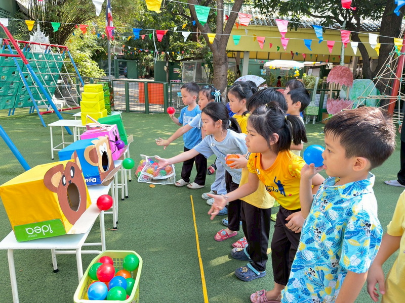เด็ก ๆ สนุกกับการตักลูกบอลใส่ตะกร้า