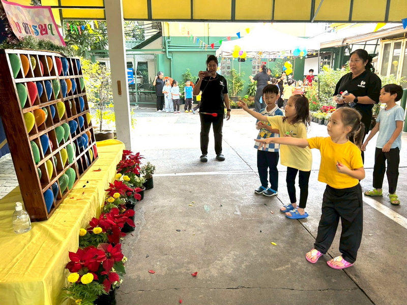 เด็ก ๆ สนุกสนานกับการเล่นเกมปาลูกโป่งเป็นอย่างมาก