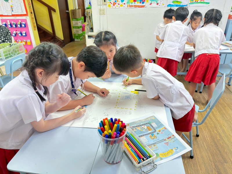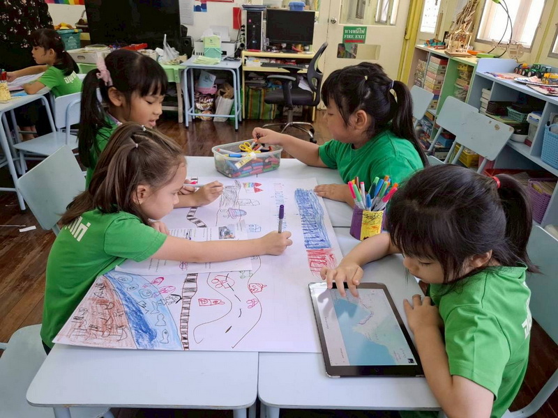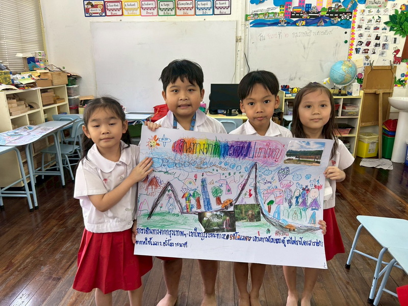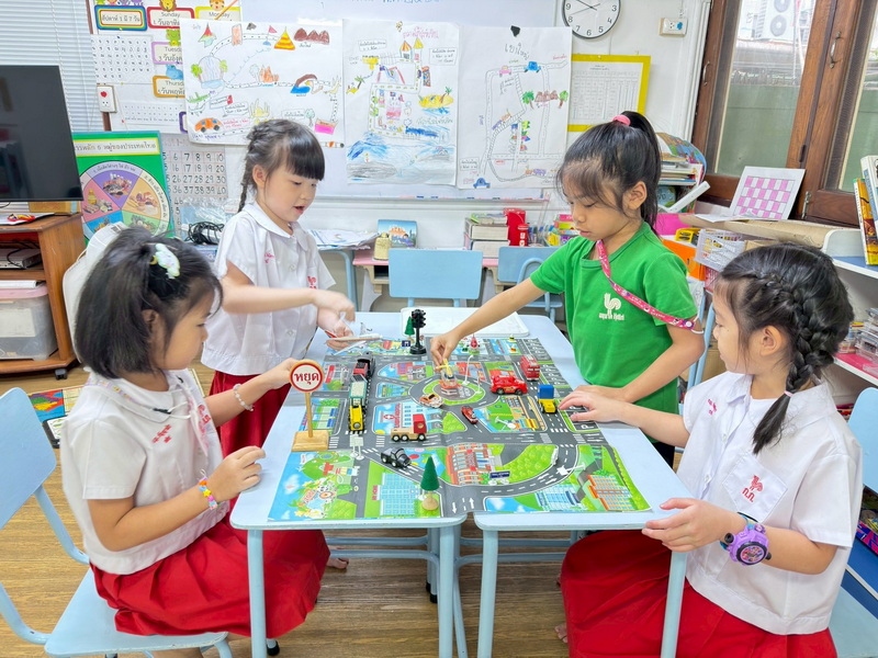 เด็ก ๆ ได้สำรวจยานพาหนะต่าง ๆ เพิ่มเติมและนำมาจัดวางลงในแผนผังการจราจรและเรียนรู้กฎจราจร