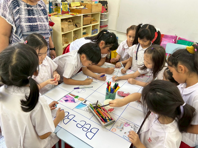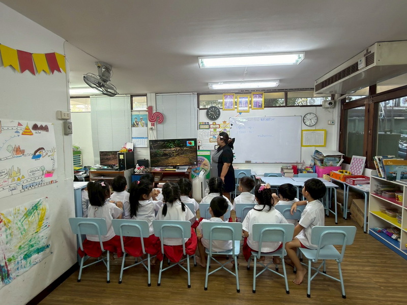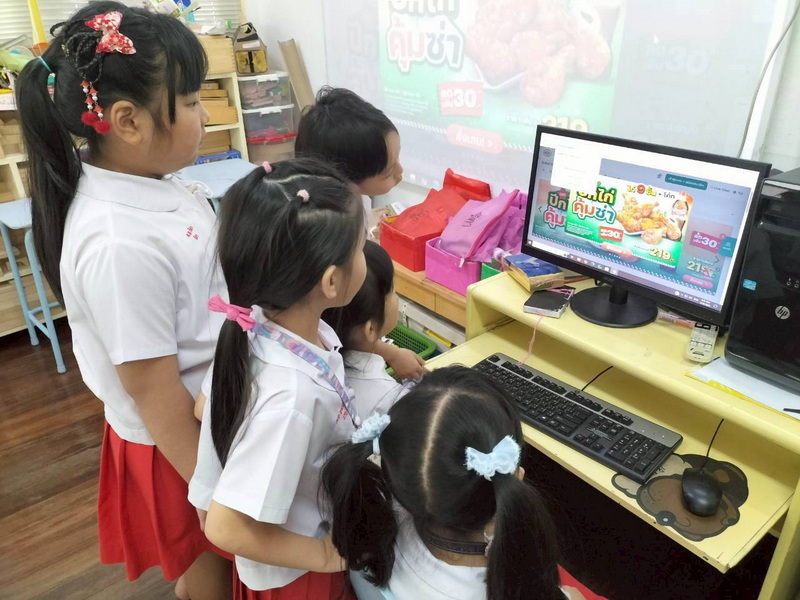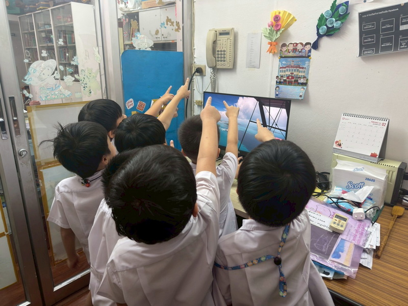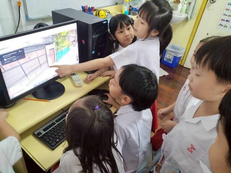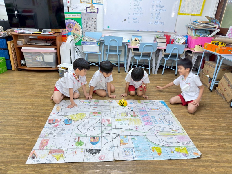 เด็ก ๆ วางแผนและควบคุมให้ Bee-Bot เดินไปตามสถานที่ต่าง ๆ ที่ต้องการ
