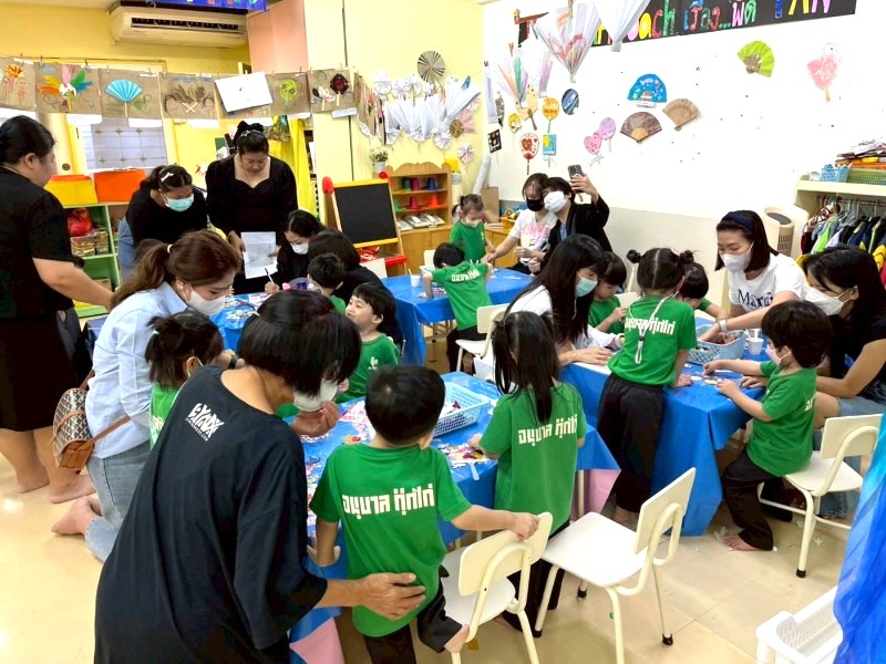 ผู้ปกครองได้อาสามาทำกิจกรรมร่วมกับเด็ก ๆ ในห้อง โดยผู้ปกครองร่วมกันสนับสนุนนำพัดพลาสติก มาให้เด็ก ๆ ได้เลือกตกแต่งพัดพลาสติกตามความสนใจ
