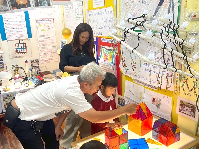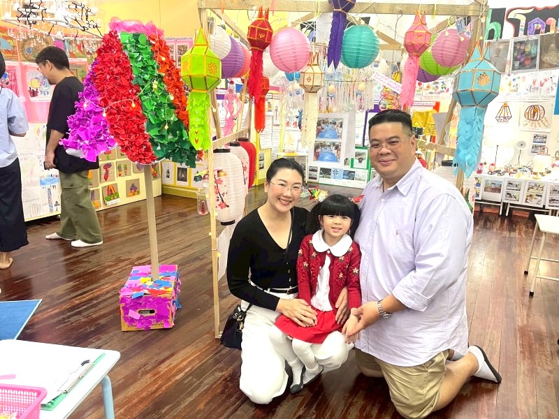 เกรซเล่าเกี่ยวกับผลงานวาดโคมไฟของฉันให้ผู้ปกครองฟัง