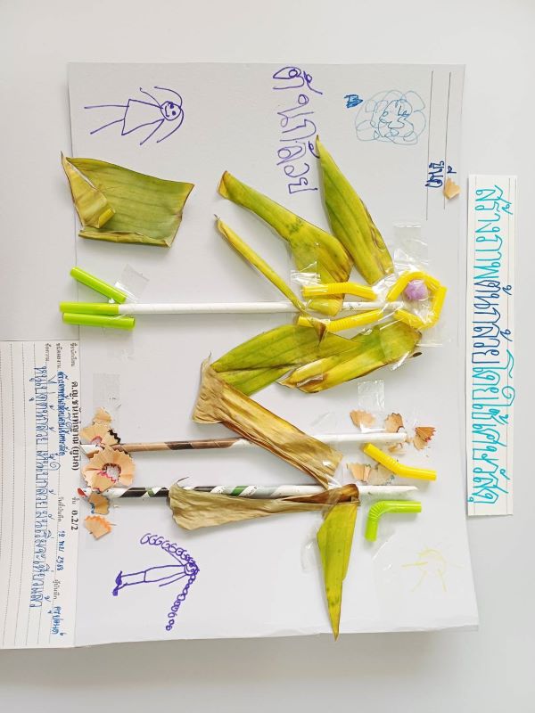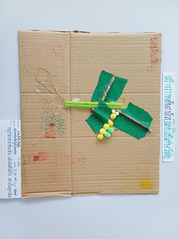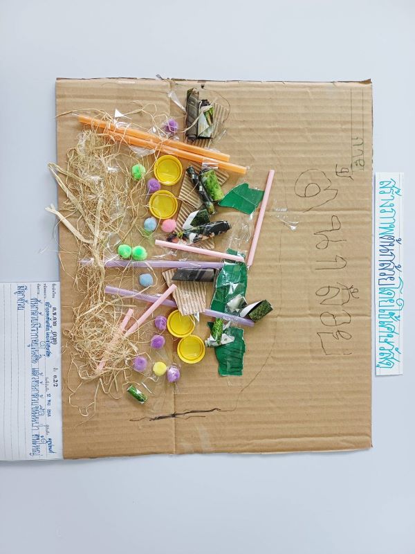 เด็ก ๆ สร้างภาพต้นกล้วยโดยใช้เศษวัสดุ