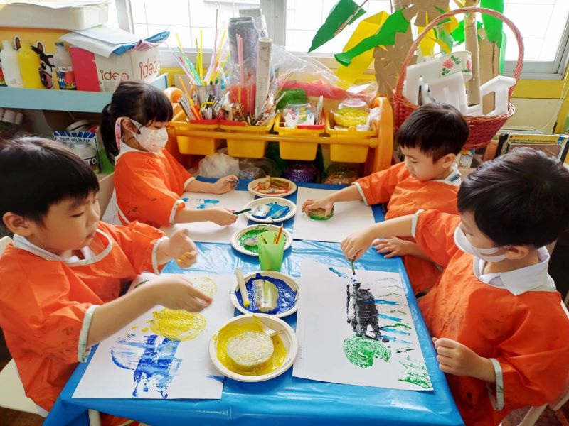 เด็ก ๆ พิมพ์ภาพสีน้ำโดยใช้กาบกล้วยและหยวกกล้วย