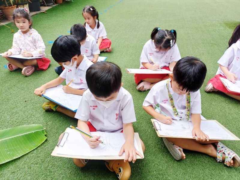 เด็ก ๆ วาดภาพจากการสำรวจ สังเกต ส่วนต่าง ๆ ของต้นกล้วย