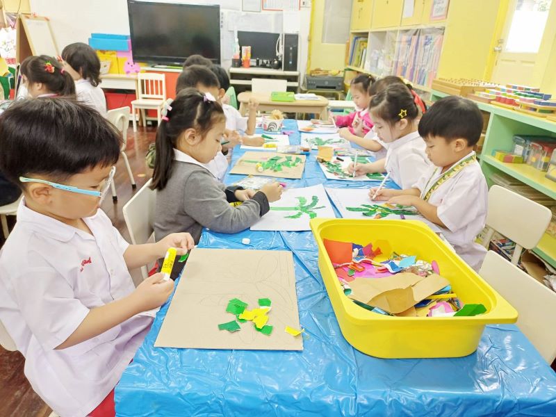 เด็ก ๆ ฉีกปะกระดาษเป็นต้นกล้วยแบบต่าง ๆ