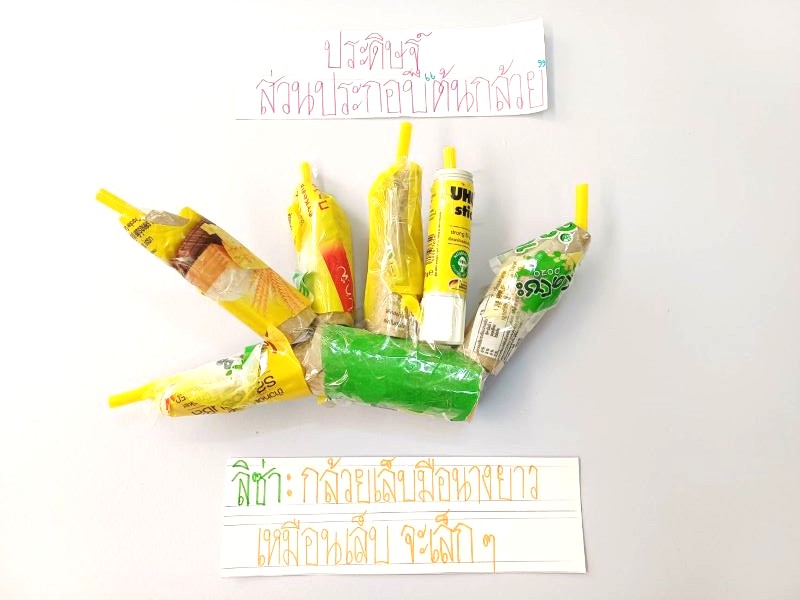 ผลงานการประดิษฐ์ส่วนประกอบของต้นกล้วยโดยใช้เศษวัสดุ ติณณ์ : กล้วยหอมลูกใหญ่กว่ากล้วยน้ำว้า