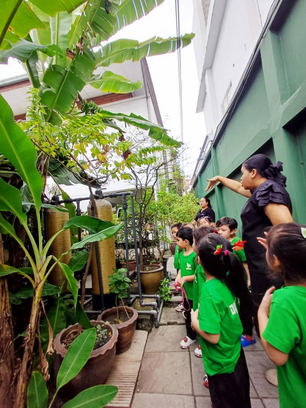 เด็ก ๆ สำรวจ สังเกต ลักษณะของต้นกล้วยเล็บมือนางในโรงเรียน