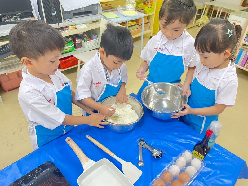 ช่วยกันทำหน้าไข่หวานโดยมีครูคอยให้คำแนะนำ