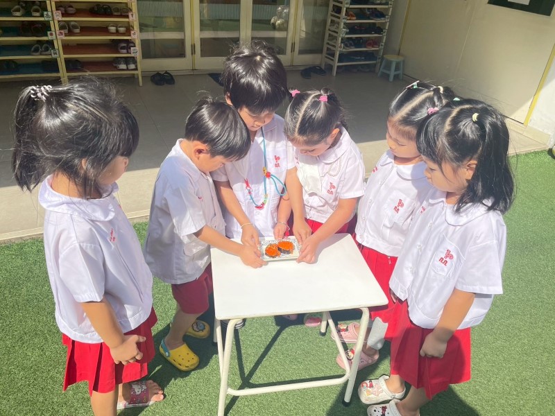แบ่งกลุ่มทดลองนำซูชิไปวางทิ้งไว้ในที่ต่าง ๆ เช่นกลางแสงแดด สังเกตการเปลี่ยนแปลงที่เกิดขึ้น