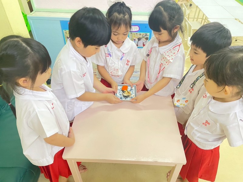แบ่งกลุ่มทดลองนำซูชิไปวางทิ้งไว้ในที่ต่าง ๆ เช่นใส่ไว้ในตู้เย็น สังเกตการเปลี่ยนแปลงที่เกิดขึ้น