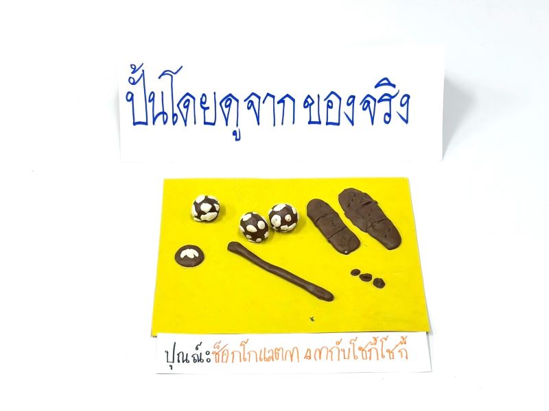 ผลงานการปั้นโดยดูจากของจริง ปุณณ์ : ช็อกโกแลต m&m กับโชกี้โชกี้