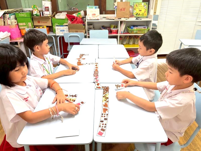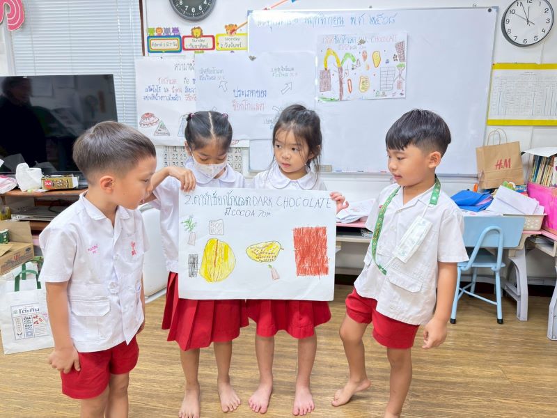 หลังจากชิมรสชาติของช็อกโกแลตแต่ละประเภทแล้ว เด็กสามารถบอกได้ว่าช็อกโกแลตแต่ละประเภทมีรสชาติ สี ความเข้มข้นของโกโก้ต่างกันอย่างไร โดยอ่านและสังเกตจากบรรจุภัณฑ์