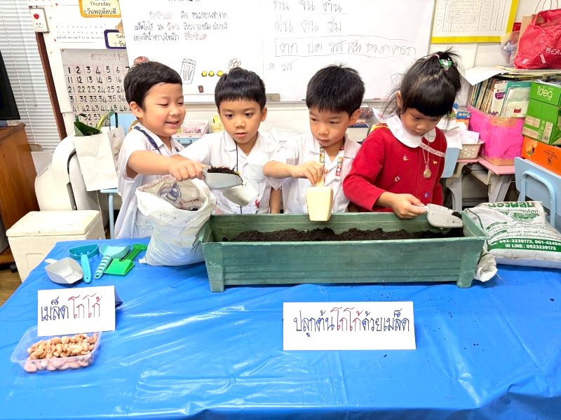 เมื่อเด็กนำเมล็ดโกโก้ดินใส่ดินแล้วกลบดิน จากนั้นทุก ๆ วันเด็ก ๆ ผลัดกันไปรดน้ำและสังเกตการเจริญเติบโตของเมล็ดโกโก้ที่ปลูก