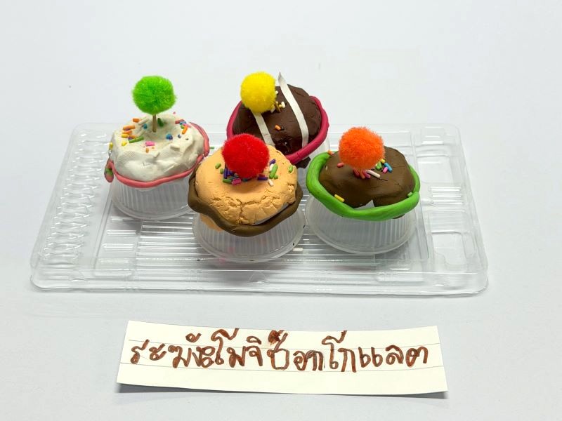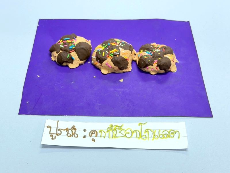 ผลงานปั้นดินน้ำมันแล้วตกแต่งด้วยวัสดุต่าง ๆ ปูรณ์ : คุกกี้ช็อกโกแลต