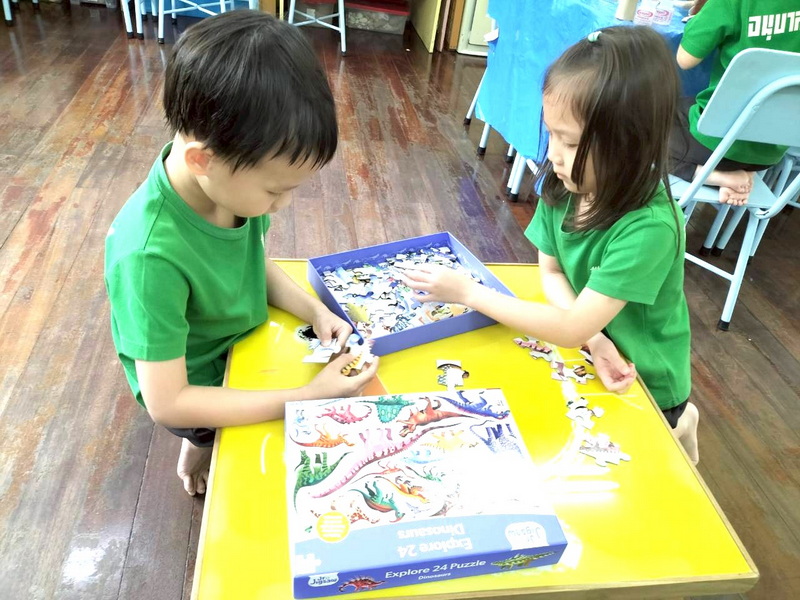 เด็ก ๆ สนุกกับเกมภาพตัดต่อไดโนเสาร์