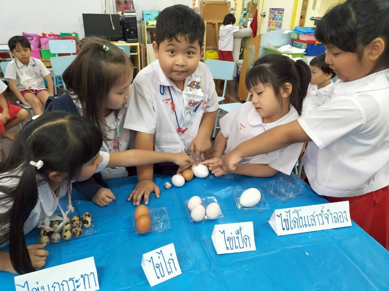 เด็ก ๆ ช่วยกันเรียงลำดับขนาดของไข่แต่ละชนิด