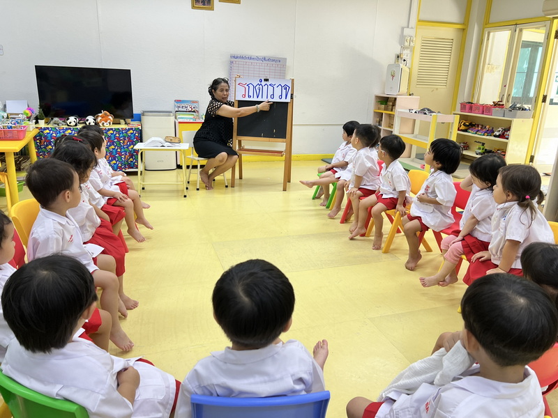 ครูให้เด็ก ๆ สังเกตคำว่า“รถตำรวจ”